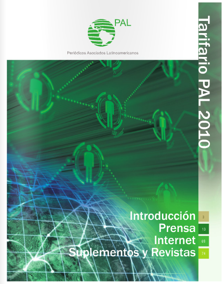 Rate Card 2010: PAL Posted on February 1, 2010May 12, 2019 by JUBES Link: http://issuu.com/latpal/docs/tarifariopal2010 Date: 01/01/2010 Reference: Rate Card: PAL, Periódicos Asociados Latinoamericanos